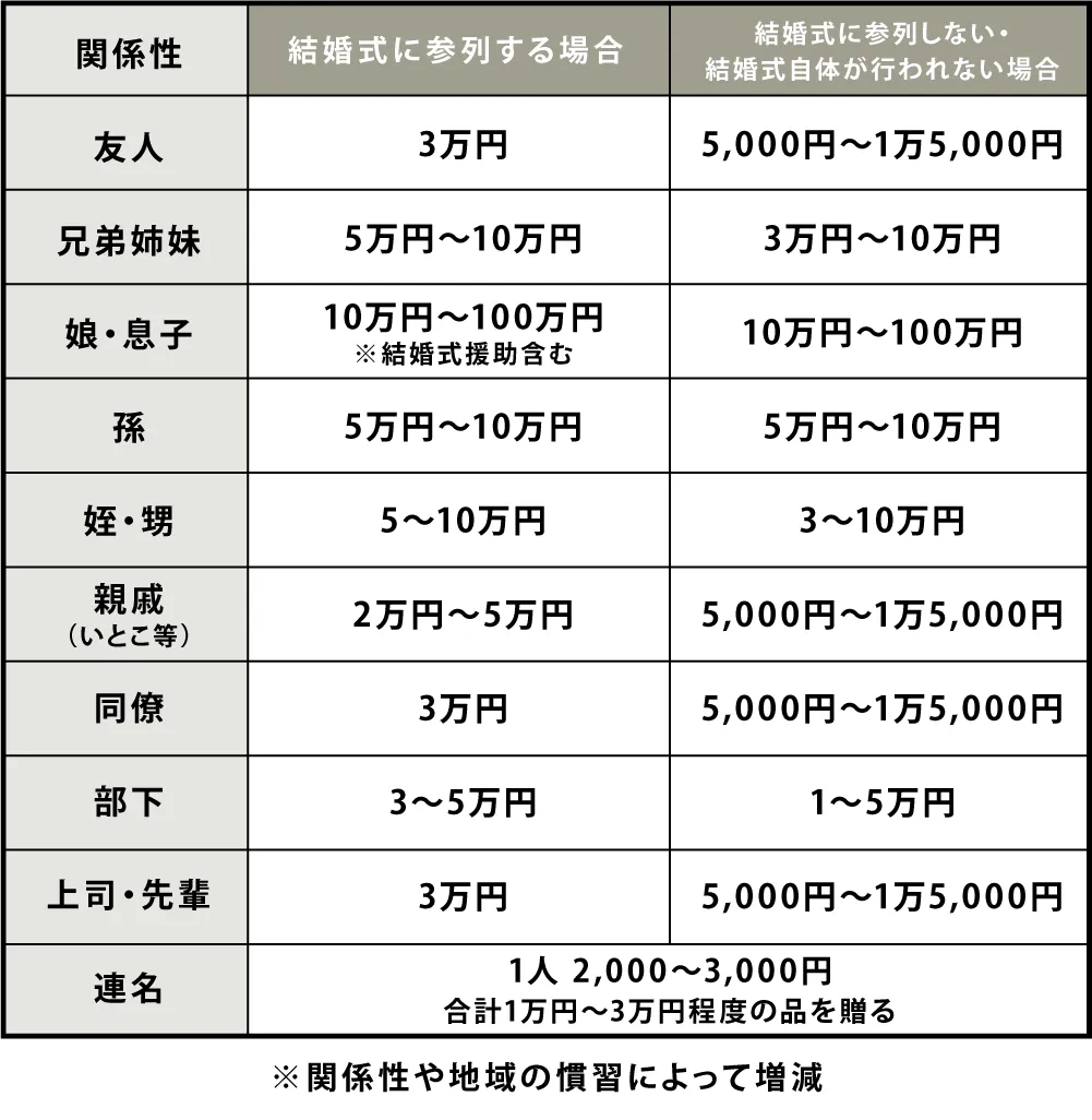 結婚祝い(ご祝儀・お祝い金)の金額相場を完全ガイド!関係性ごとの金額を細かく解説