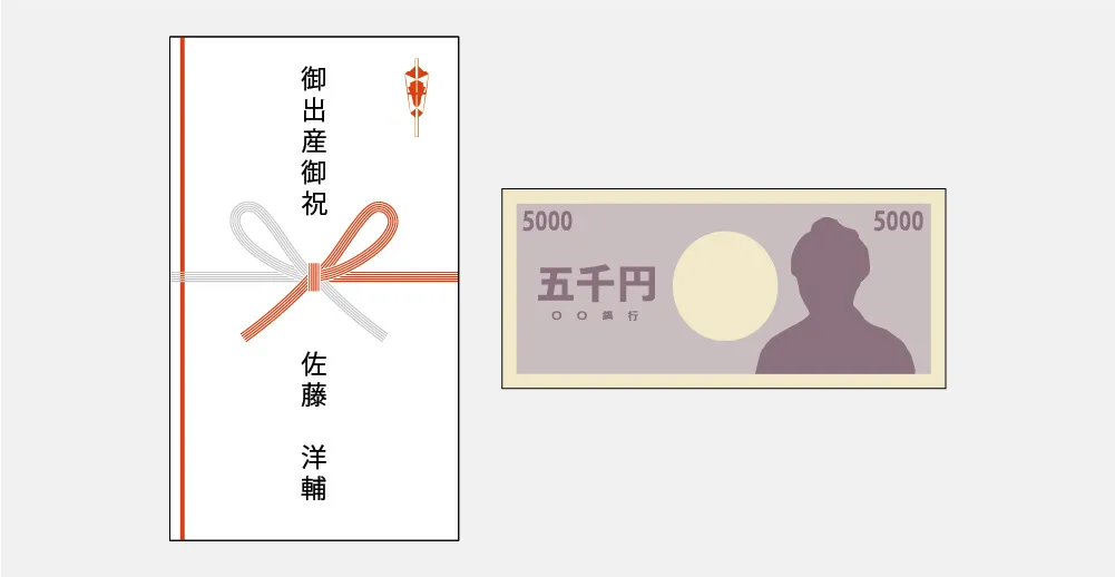 出産祝いでは、ご祝儀袋(のし袋)に新札を入れて贈るのが一般的です。