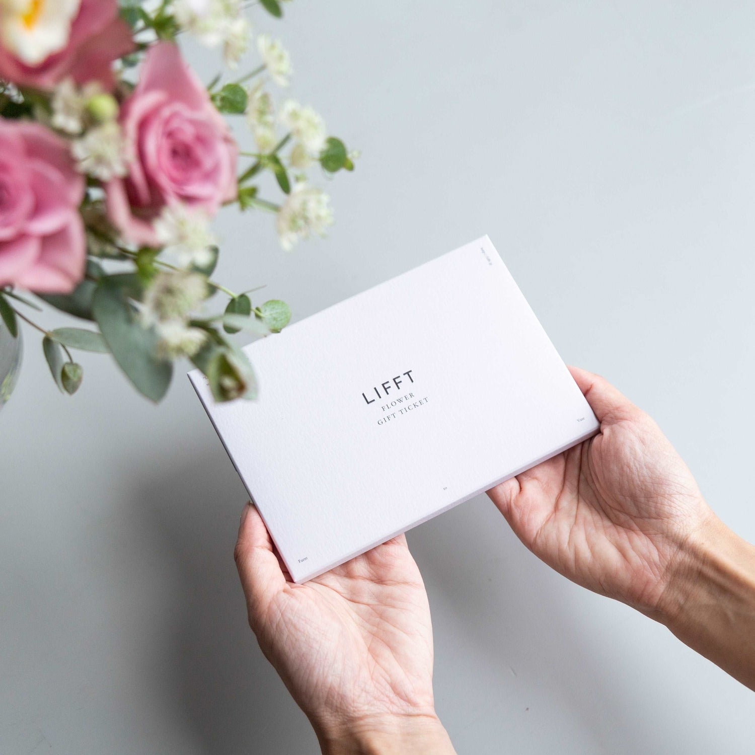 アジサイやカスミソウなど10種類以上の草花を使い、一つひとつ手作りされた〈hikka〉のミニブーケ付きメッセージカード。リボンがついているので、壁やコルクボードにそのまま飾っておけます。世界にひとつだけのカードで、感謝の気持ちを届けるプレゼントに。