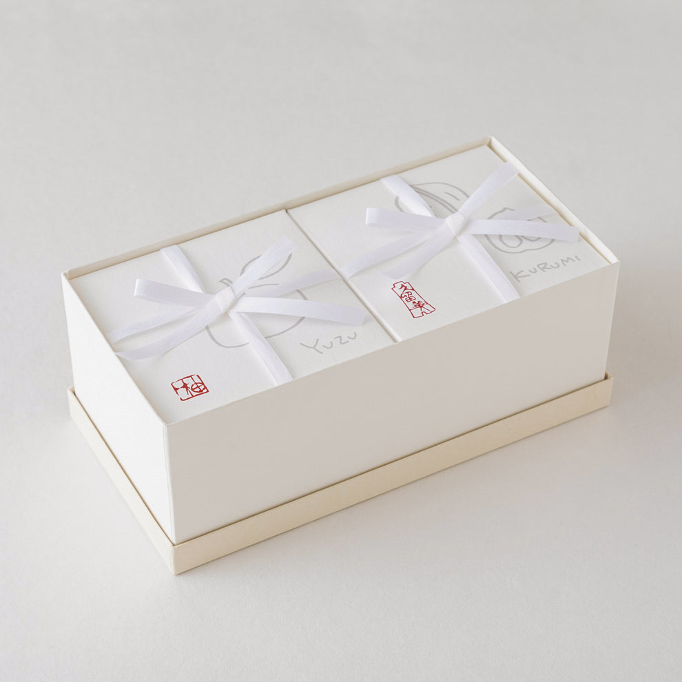 瀬戸内産柚子を使ったもちもちの柚子もちと、醤油風味が香ばしい久留美もちの詰め合わせ。