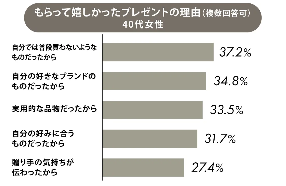 ⚪︎ 40代女性が誕生日プレゼントでもらって嬉しいギフトは「普段買えない好きなブランドのアイテム」