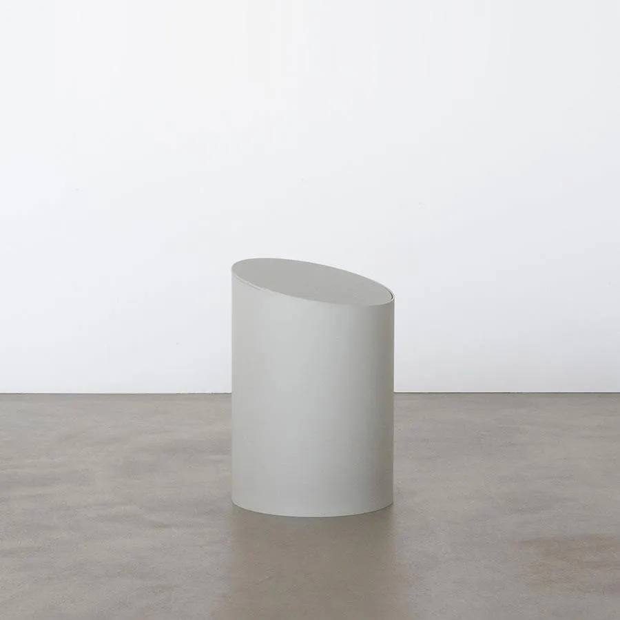 丸太を斜めに切り落としたようなフォルムが彫刻のように佇み、シンプルを極めたミニマリズムを体現しています。
