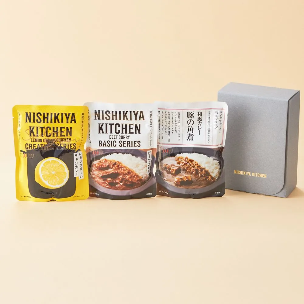 宮城県の〈NISHIKIYA KITCHEN〉が手がける、3種のカレー食べ比べプチギフト。 ボックス入りで届いてすぐに渡せる手軽さが魅力で、ひとりでもシェアでも楽しめます。 スイーツ以外のちょっとしたギフトを探しているときにおすすめです。
