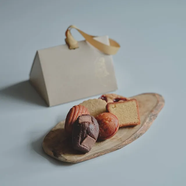 〈sarkara〉の代表的な焼き菓子6種をひとまとめにしたアソートBOX。 サブレからフィナンシェ、マドレーヌまで、ティータイムのお供に飽きの来ないラインナップです。 トレードカラーのリボンが持ち手になる箱は、そのまま手渡しできる妻への誕生日の手土産。