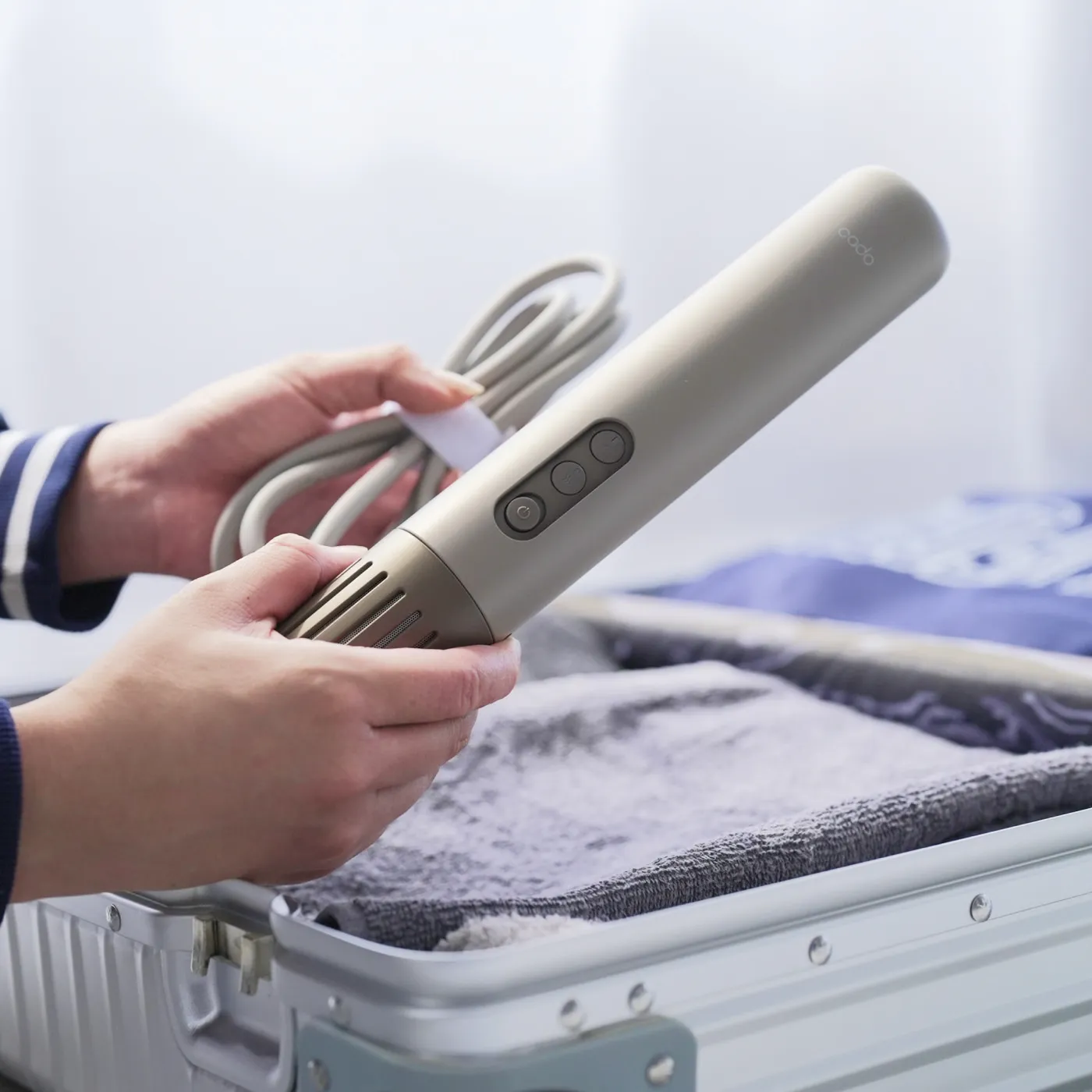 シリーズ最小の〈cado〉FOEHN LITE、わずか400gで持ち運べるワンタッチふとん乾燥機。 小型ながら本格的な乾燥力で、海外出張や旅先でもふかふかの布団で眠れます。 「ふとん乾燥機がほしいけど場所を取る」と感じている妻への誕生日ギフトにぴったりかもしれません。