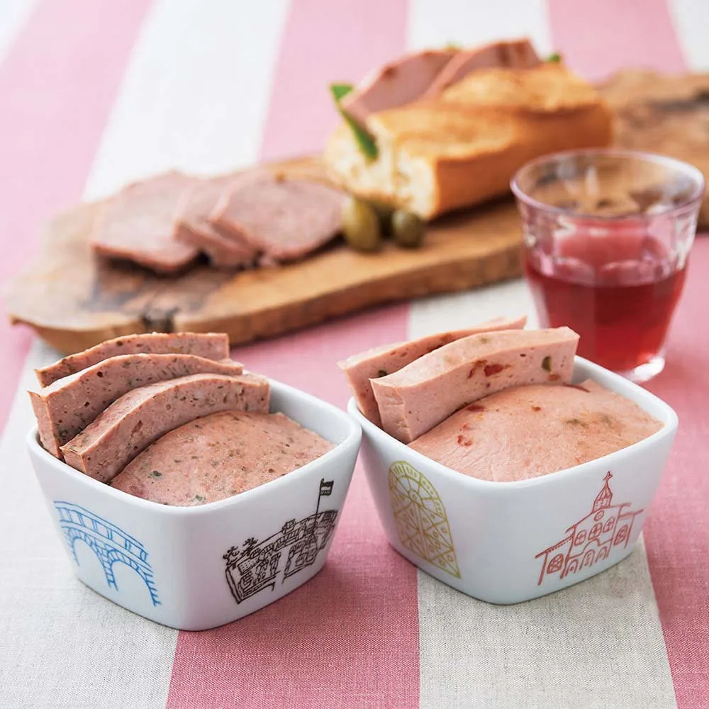 長崎ケーゼキューブ(レバー・パプリカ2種入り)婦人画報別注 波佐見焼器入り[明治屋ハム]