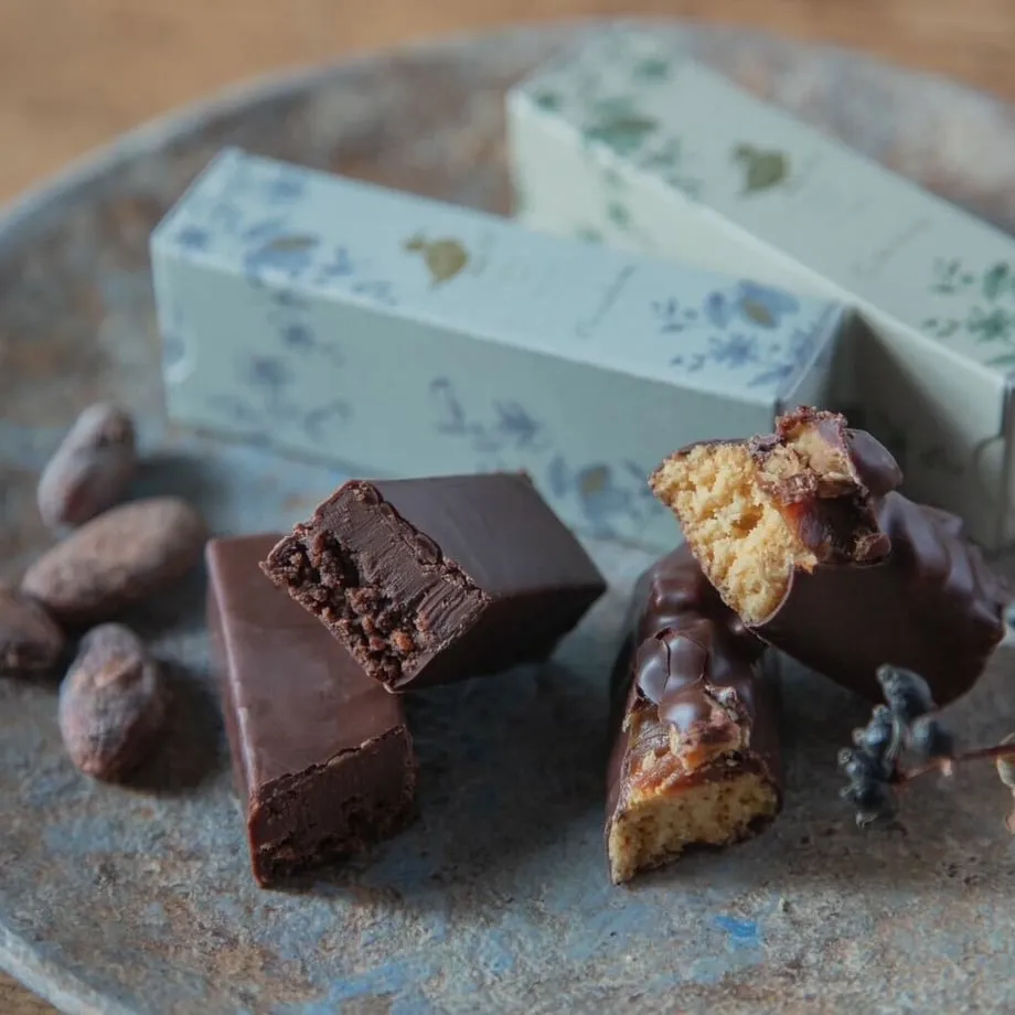 ラム酒ブラウニー×カシスジャムのチョコバーと、ほろ苦キャラメル×ナッツのキャラメルバーを各4本ずつ詰めた〈teal〉のセット。2つの味を交互に食べ比べるのも楽しそうです。クラフトチョコならではの奥深い味わいで、スイーツ好きへの誕生日プレゼントに。
