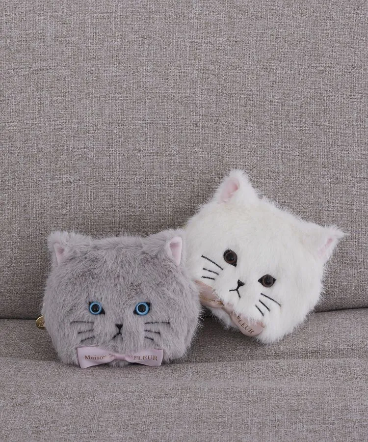 長毛種のねこをイメージしたフェイス型の、〈Maison de FLEUR〉のポーチ。 リボンをあしらったおめかしデザインに、見た目以上の収納力と内ポケットの実用性を備えています。 ぬい活女子のバッグの中で、しっかり主役を張ってくれる愛嬌のあるアイテム。 かわいいもの好きの友達への、誕生日プチギフトとしてどうぞ。