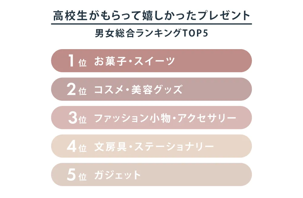 ▼ 高校生がもらって嬉しかった1位は「お菓子・スイーツ」
