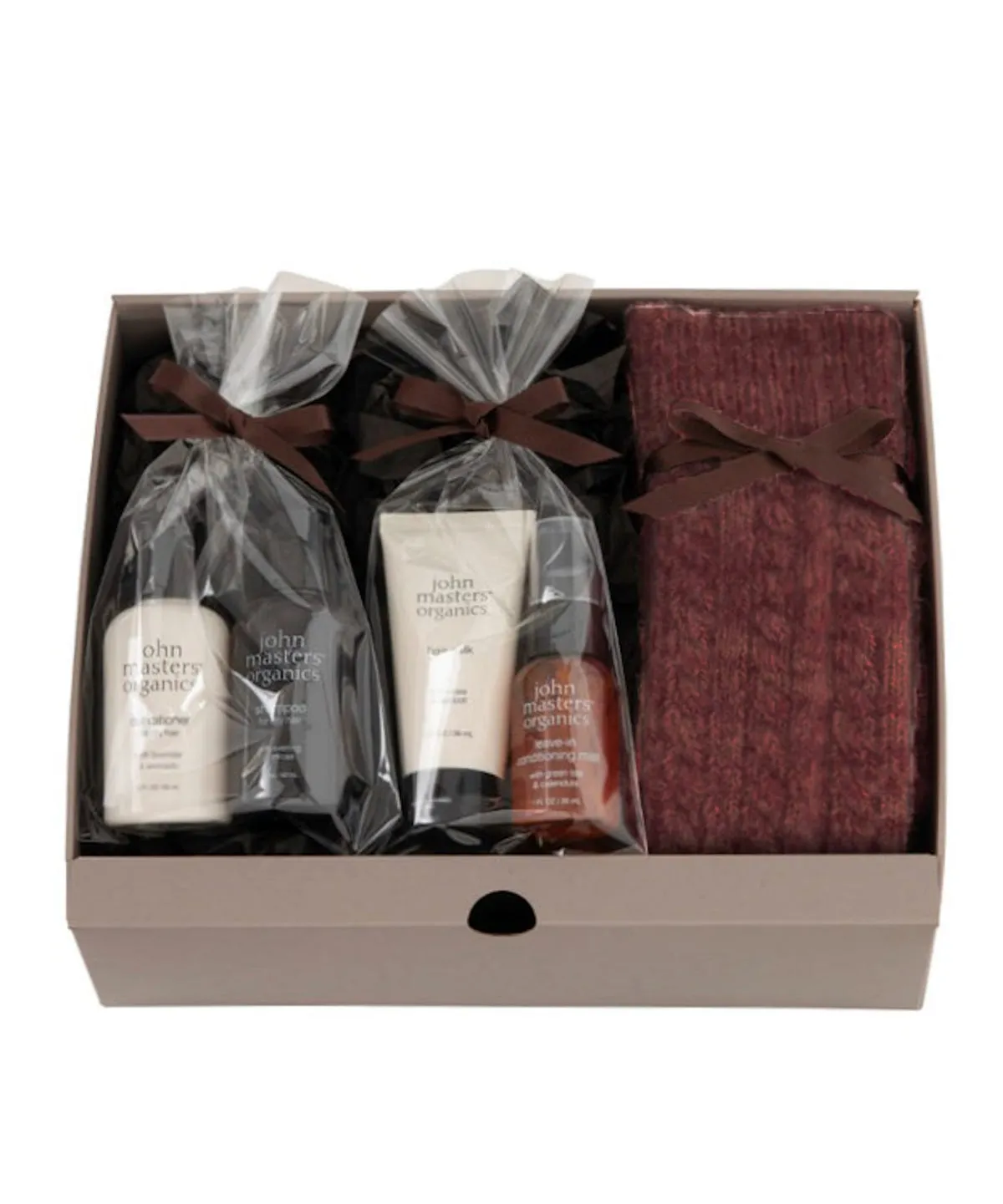 〈john masters organics〉の携帯ヘアケア4点と、〈Foo Tokyo〉のニットルームソックスを組み合わせたトラベルセット。上質な香りのバスタイムと、暖かく快適な足元を一緒に贈れる充実構成です。卒業旅行や帰省の旅先で実感できる気の利いたアイテム揃いも、贈る側の細やかさが伝わります。旅好きの大学生への、丁寧なバースデーギフトとして。