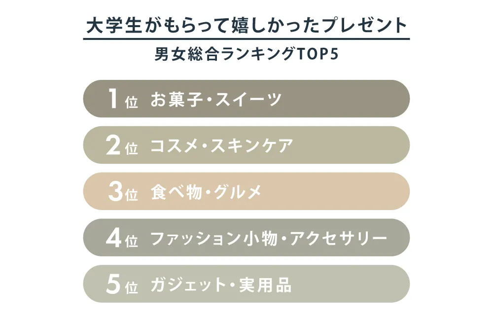 ▼ 大学生がもらって嬉しかった1位は「お菓子・スイーツ」