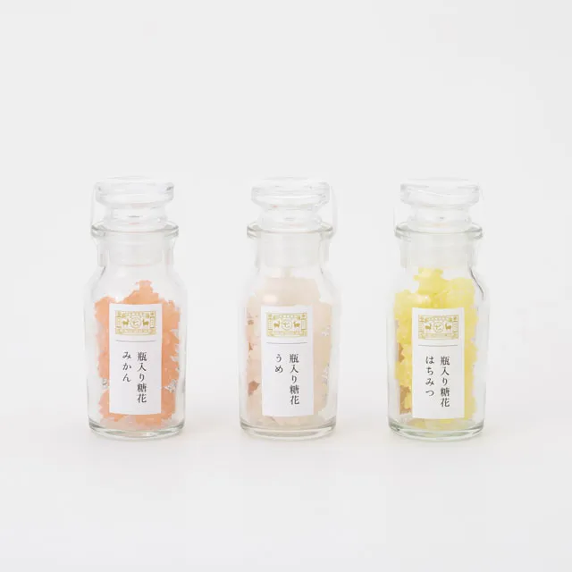ポルトガル語の「コンフェイト」が語源とされる金平糖を、〈中川政七商店〉が小さなガラス瓶に。みかん・うめなど、見た目も鮮やかな小さな花のような姿が「糖花」の名にふさわしい愛らしさです。瓶のケースまで涼やかで、ちょっと飾りたくなる佇まいも魅力。ワンコインで気軽に渡せる、お母さんへのプチギフトとして。